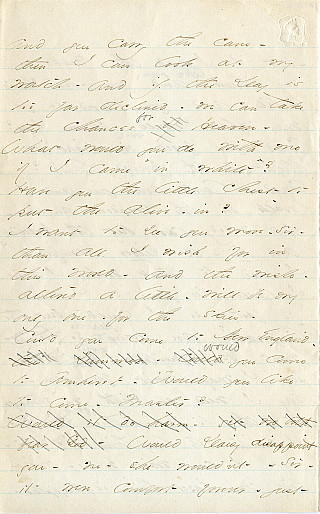 On laid, cream, blue-ruled stationery, embossed with a queen's head above the letter L in a decorative frame